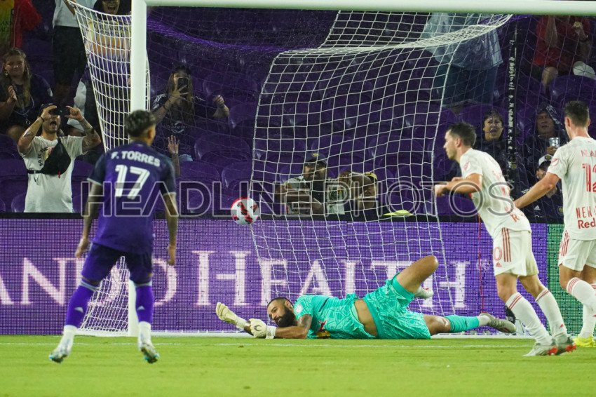 Orlando, Florida, USA, July 27, 2022, New York Red Bulls Goalkeeper Carlos #1 attempt to make a save during the US Open Cup Semi Finals at Exploria Stadium. (Photo Credit: Marty Jean-Louis)