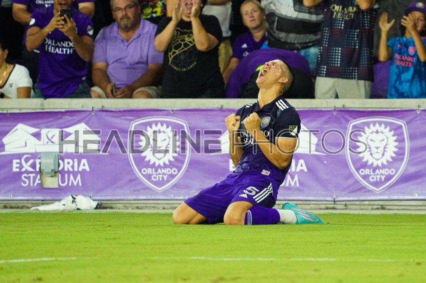 Orlando, Florida, USA, July 27, 2022, Orlando City SC Midfielder Cesar Araujo #5 reacts after scoring during the US Open Cup Semi Finals at Exploria Stadium. (Photo Credit: Marty Jean-Louis)