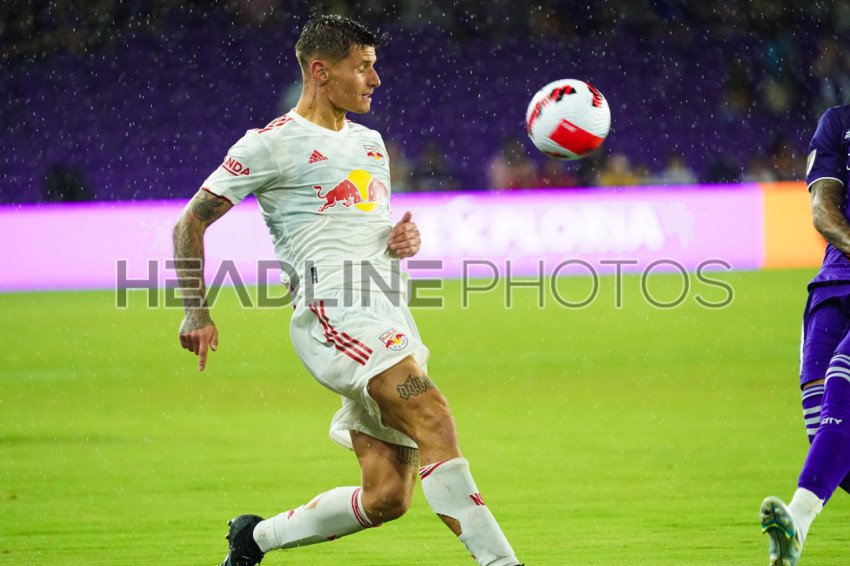 Orlando, Florida, USA, July 27, 2022, New York Red Bulls forward Patryk Klimala #9 attempt makes a pass during the US Open Cup Semi Finals at Exploria Stadium. (Photo Credit: Marty Jean-Louis)