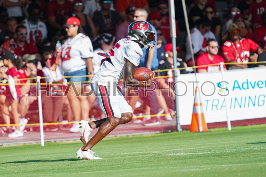 Tampa, Florida, USA, August 7, 2022, Tampa Bay Buccaneers Wide Receiver Cyril Grayson Jr. #15 runs with the ball during Training Camp at AdventHealth Training Center\n. (Photo Credit: Marty Jean-Louis)