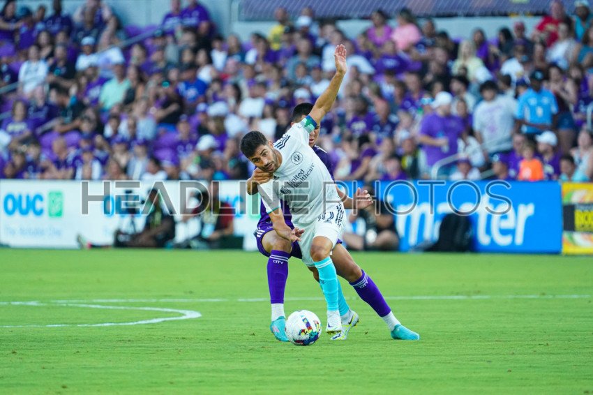 Orlando, Florida, USA, August 6, 2021, New England Revolution Midfielder Carles Gil #10 fight to keep the ball during the first half at Exploria Stadium. (Photo Credit: Marty Jean-Louis)