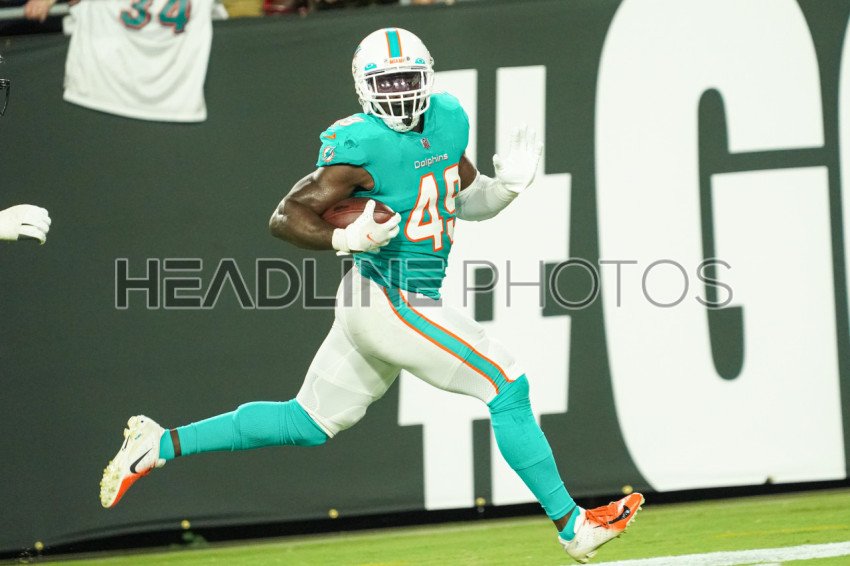 Tampa Bay, Florida, USA, August 13, 2022, Miami Dolphins Linebacker Sam Eguavoen #49 makes a touchdown in the second quarter at Raymond James Stadium. (Photo Credit: Marty Jean-Louis)
