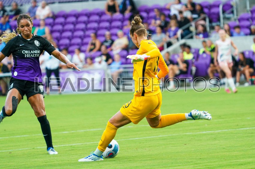 Orlando, Florida, USA, August 7, 2022, Angel City FC Goalkeeper Dijana Haracic #13 makes a kick at Exploria Stadium. (Photo Credit: Marty Jean-Louis)