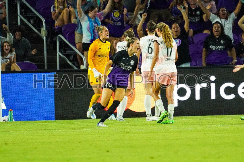Orlando, Florida, USA, August 7, 2022, Orlando Pride player Julie Doyle #20 reacts after scoring at Exploria Stadium. (Photo Credit: Marty Jean-Louis)
