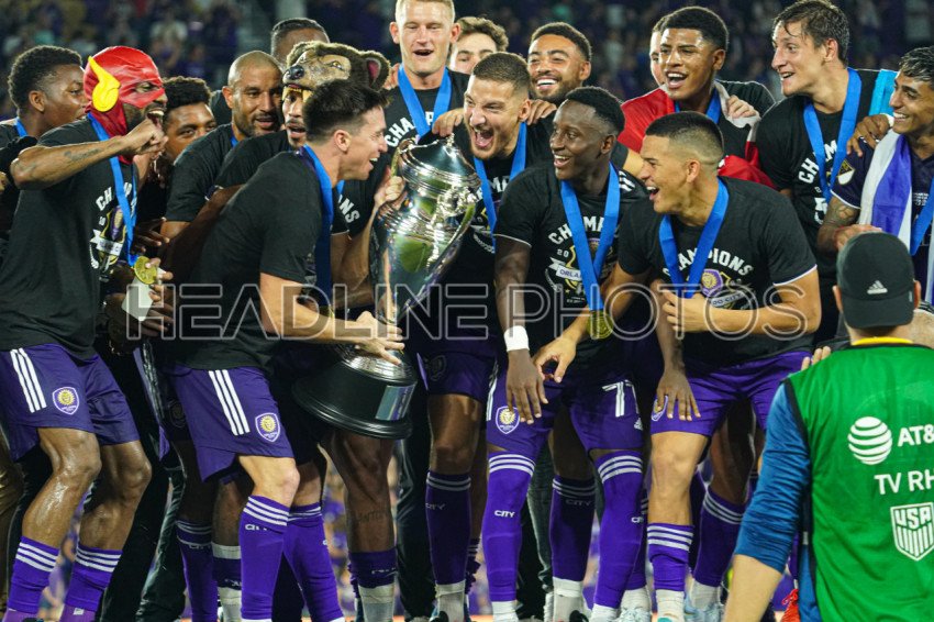Orlando, Florida, USA, September 7, 2022, SOrlando City SC players celebrate after winning the US Open Cup final match at Exploria Stadium. (Photo Credit: Marty Jean-Louis)