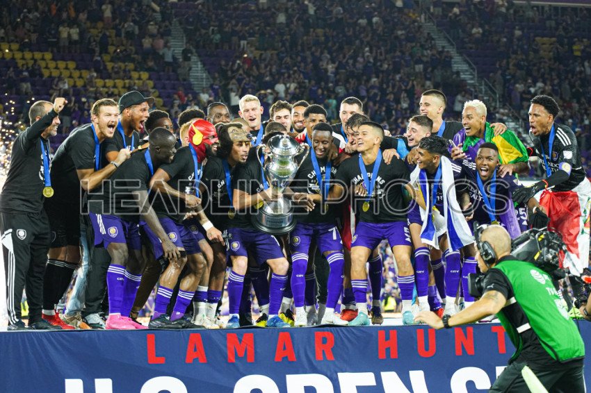 Orlando, Florida, USA, September 7, 2022, SOrlando City SC players celebrate after winning the US Open Cup final match at Exploria Stadium. (Photo Credit: Marty Jean-Louis)