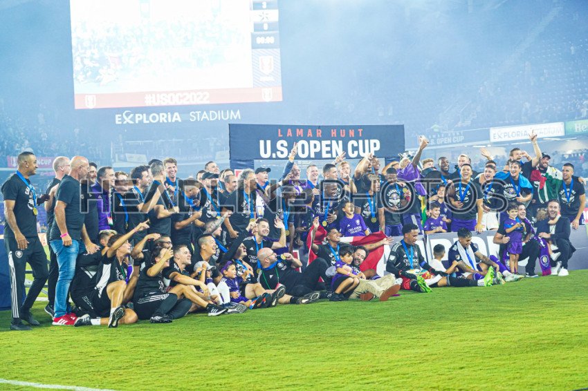Orlando, Florida, USA, September 7, 2022, SOrlando City SC players celebrate after winning the US Open Cup final match at Exploria Stadium. (Photo Credit: Marty Jean-Louis)