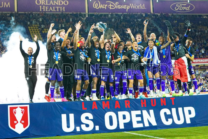 Orlando, Florida, USA, September 7, 2022, SOrlando City SC players celebrate after winning the US Open Cup final match at Exploria Stadium. (Photo Credit: Marty Jean-Louis)