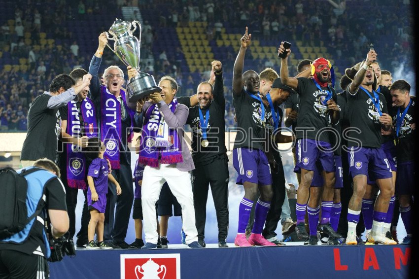 Orlando, Florida, USA, September 7, 2022, SOrlando City SC players celebrate after winning the US Open Cup final match at Exploria Stadium. (Photo Credit: Marty Jean-Louis)