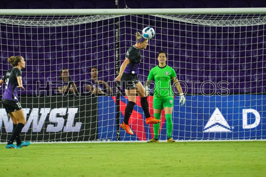 Orlando, Florida, USA, September 22, 2022, Orlando Pride defender Megan Montefusco #5 makes a header in the first half at Exploria Stadium. (Photo Credit: Marty Jean-Louis)