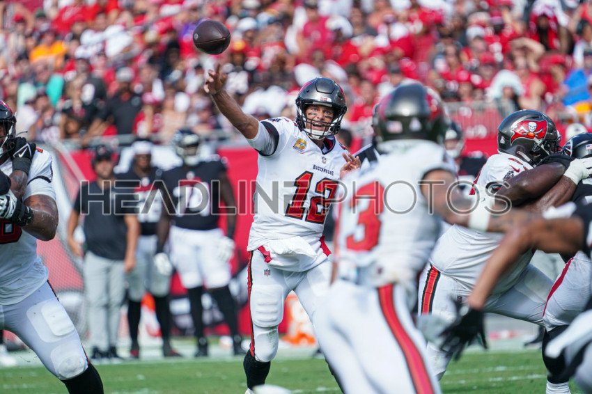 Tampa Bay, Florida, USA, October 9, 2022, Tampa Bay Buccaneers quarterback Tom Brady #12 makes a pass during the third quarter at Raymond James Stadium. (Photo Credit: Marty Jean-Louis)