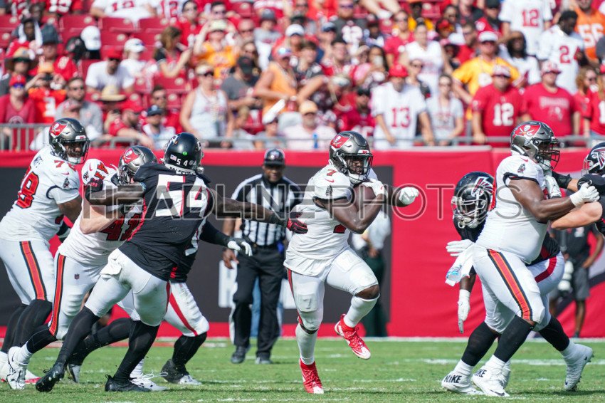Tampa Bay, Florida, USA, October 9, 2022, Tampa Bay Buccaneers running back Leonard Fournette #7 makes a run up field during the 3rd quarter at Raymond James Stadium. (Photo Credit: Marty Jean-Louis)