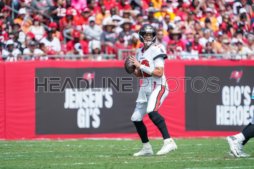 Tampa Bay, Florida, USA, October 9, 2022, Tampa Bay Buccaneers Quaterback Tom Brady #12 makes a pass during the game at Raymond James Stadium. (Photo Credit: Marty Jean-Louis)
