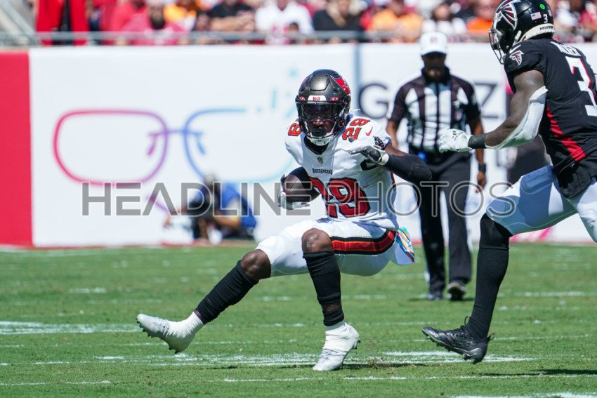 Tampa Bay, Florida, USA, October 9, 2022, Tampa Bay Buccaneers player Rachaad White #29 receives a pass during the game at Raymond James Stadium. (Photo Credit: Marty Jean-Louis)