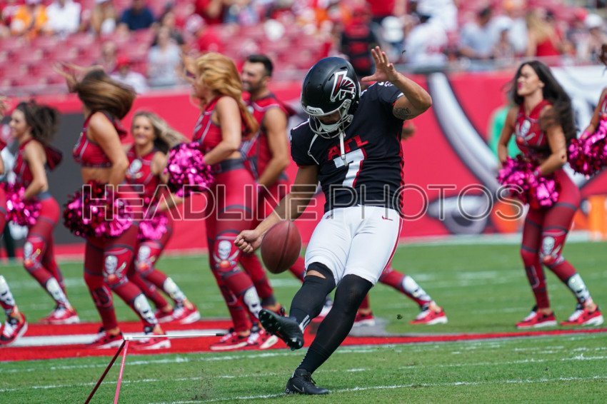 Tampa Bay, Florida, USA, October 9, 2022, Atlanta Falcons kicker Younghoe Koo #7 warms up at Raymond James Stadium. (Photo Credit: Marty Jean-Louis)