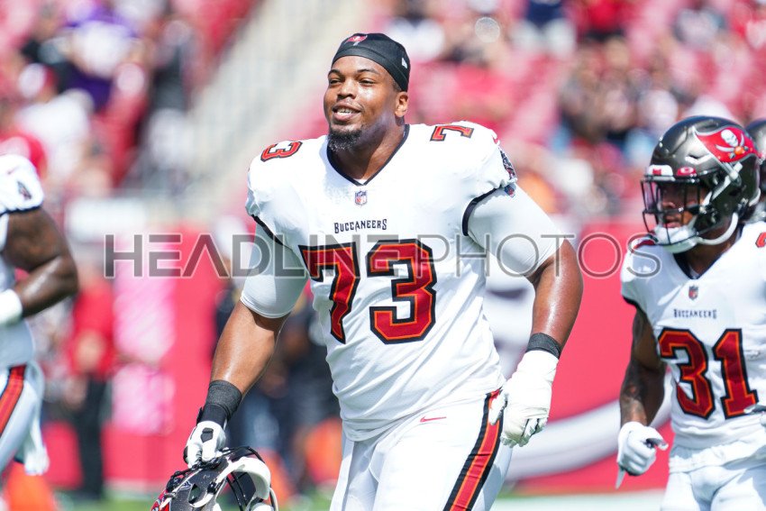 Tampa Bay, Florida, USA, October 9, 2022, Tampa Bay Buccaneers player Brandon Walton #73 runs back to the locker at Raymond James Stadium. (Photo Credit: Marty Jean-Louis)