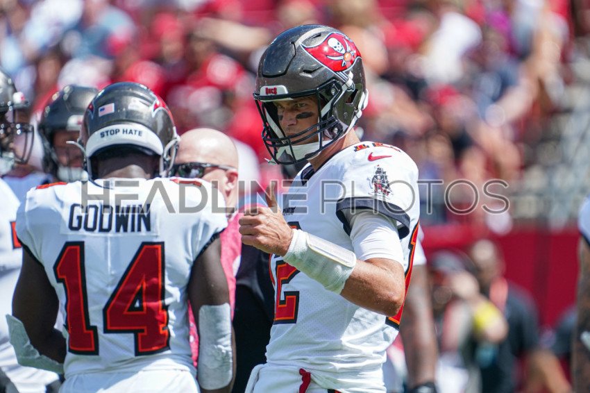Tampa Bay, Florida, USA, October 9, 2022, Tampa Bay Buccaneers Quaterback Tom Brady #12 gives a thumbs up during the game at Raymond James Stadium. (Photo Credit: Marty Jean-Louis)