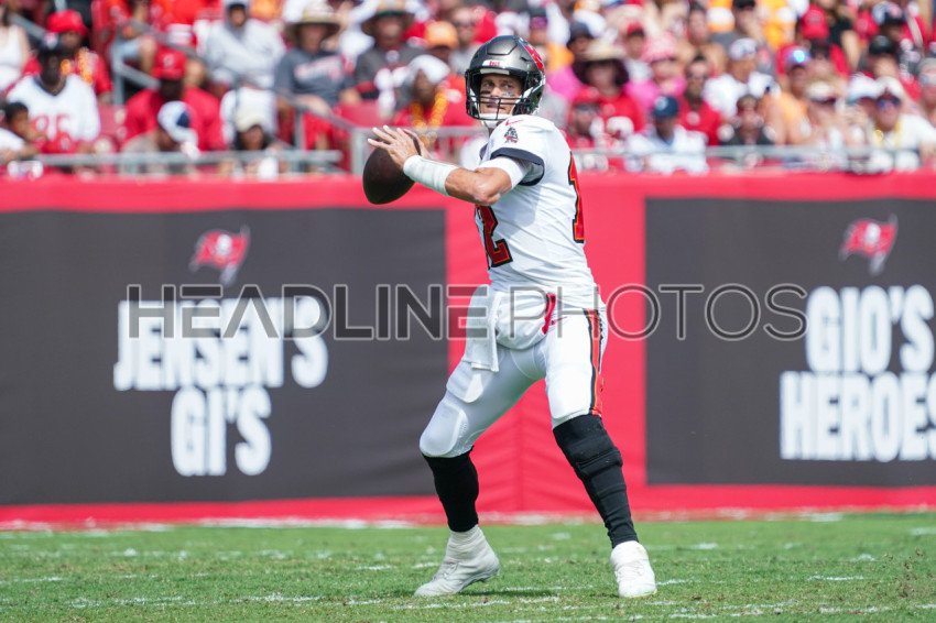 Tampa Bay, Florida, USA, October 9, 2022, Tampa Bay Buccaneers Quaterback Tom Brady #12 makes a pass during the game at Raymond James Stadium. (Photo Credit: Marty Jean-Louis)