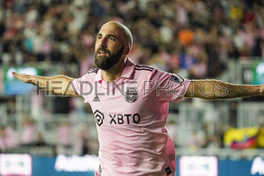 Fort Lauderdale, Florida, USA, October 5, 2022, Inter Miami attacker Gonzalo Higuaín #10 celebrate after scoring against Orlando City at Drive Pink Stadium. (Photo Credit: Marty Jean-Louis)