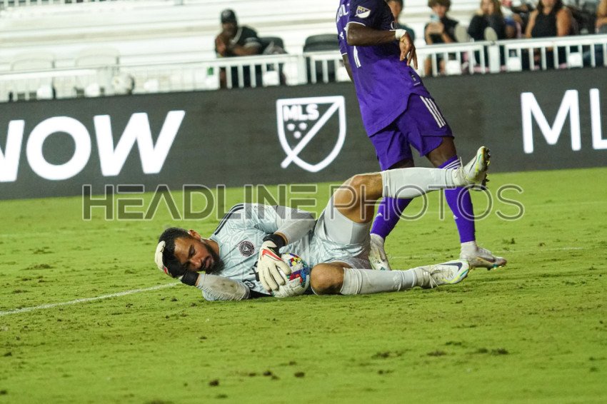 Fort Lauderdale, Florida, USA, October 5, 2022, nter Miami Goalkeeper Drake Callender #27 makes a save during the second half at Drive Pink Stadium. (Photo Credit: Marty Jean-Louis)