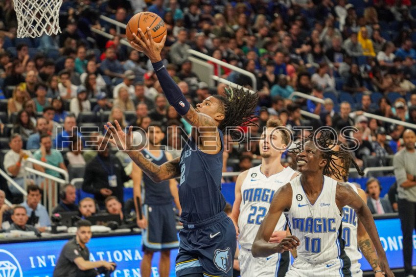 Orlando, Florida, USA, October 11, 2022, Memphis Grizzlies Point Guard Ja Morant #12 attempt to make a basket during the second half at the Amway Center. (Photo Credit: Marty Jean-Louis)