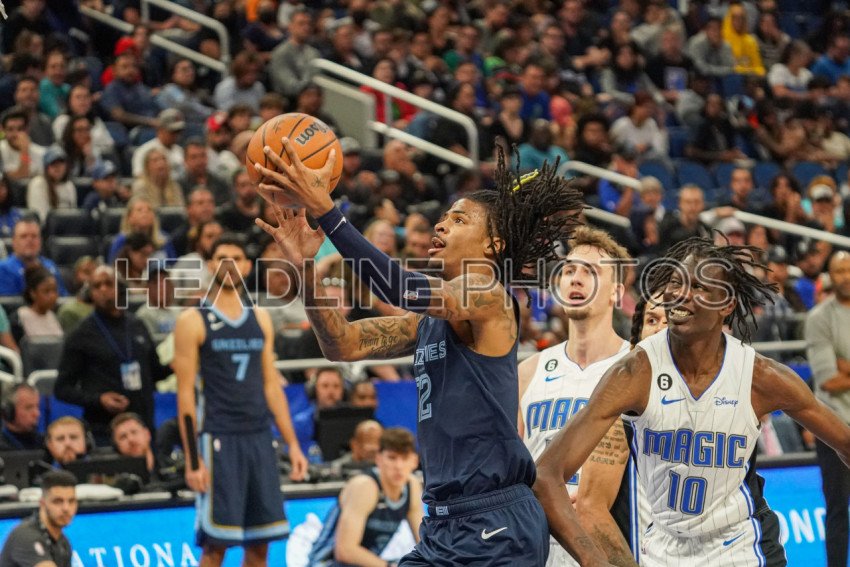 Orlando, Florida, USA, October 11, 2022, Memphis Grizzlies Point Guard Ja Morant #12 attempt to make a basket during the second half at the Amway Center. (Photo Credit: Marty Jean-Louis)