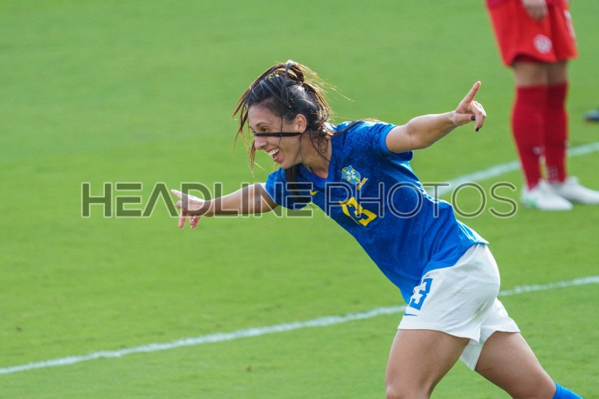 Orlando, Florida, USA, February 24, 2021, Brazil Midfielder Julia #13 celebrate after scoring the second goal of the match during the SheBelieves Cup at Exploria Stadium (Photo Credit: Marty Jean-Louis)