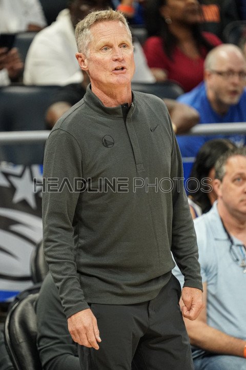 Orlando, Florida, USA, November 3, 2022, Golden State Warriors Head Coach Steve Kerr giving directions during the game at the Amway Center. (Photo Credit: Marty Jean-Louis)