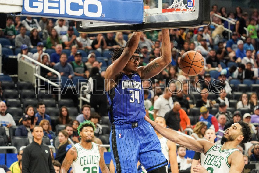 Orlando, Florida, USA, October 22, 2022, Orlando Magic Center Wendell Carter Jr #34 makes a dunk in the fourth quarter at the Amway Center. (Photo Credit: Marty Jean-Louis)