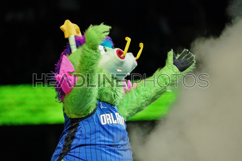 Orlando, Florida, USA, October 22, 2022, Orlando Magic Mascot Stuff the Magic Dragon at the Amway Center. (Photo Credit: Marty Jean-Louis)