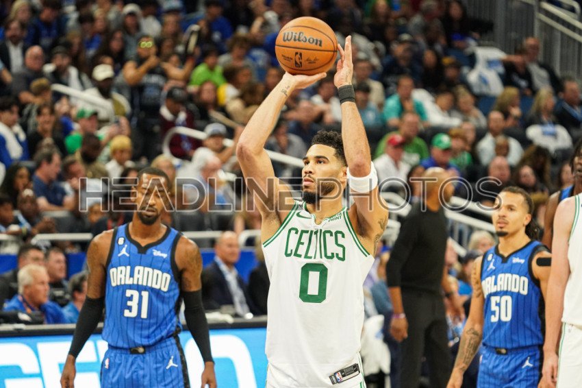 Orlando, Florida, USA, October 22, 2022, Boston Celtics Forward Jayson Tatum #0 takes a shot after a technical against Wendell Carter Jr at the Amway Center. (Photo Credit: Marty Jean-Louis)