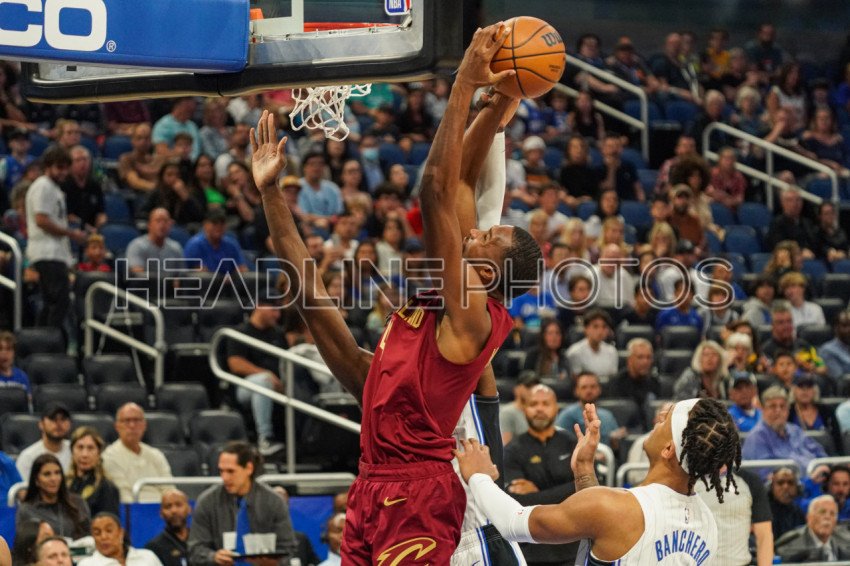 Orlando, Florida, USA, October 14, 2022, Cleveland Cavaliers Center Evan Mobley #4 attempt to make a basket in the first half at the Amway Center. (Photo Credit: Marty Jean-Louis)