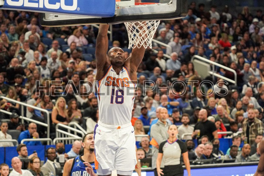 Orlando, Florida, USA, November 7, 2022, Phoenix Suns center Bismack Biyombo #18 makes a dunk at the Amway Center. (Photo Credit: Marty Jean-Louis)