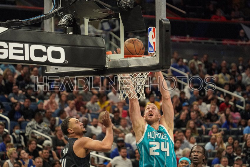 Orlando, Florida, USA, November 14, 2022, Charlotte Hornests center Mason Plumlee #24 scores in the first half at the Amway Center. (Photo Credit: Marty Jean-Louis)