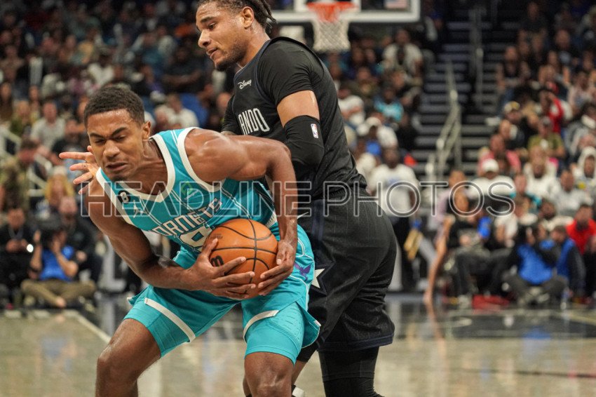Orlando, Florida, USA, November 14, 2022, Charlotte Hornests Guard Theo Maledon #9 steals the ball from Chuma Okeke #3 at the Amway Center. (Photo Credit: Marty Jean-Louis)