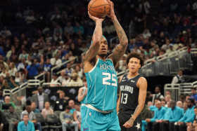 Orlando, Florida, USA, November 14, 2022, Charlotte Hornests Power Forward P.J. Washington #25 shoots a free throw in the second half at the Amway Center. (Photo Credit: Marty Jean-Louis)