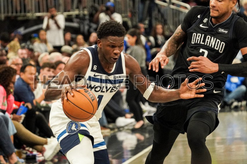 Orlando, Florida, USA, November 16, 2022, Minnesota Timberwolves Guard Anthony Edwards #1 runs pass Chuma Okeke #3 in the second half at the Amway Center. (Photo Credit: Marty Jean-Louis)