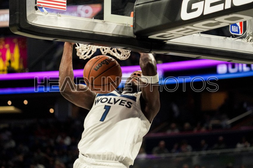 Orlando, Florida, USA, November 16, 2022, Minnesota Timberwolves Guard Anthony Edwards #1 makes a dunk in the second half at the Amway Center. (Photo Credit: Marty Jean-Louis)