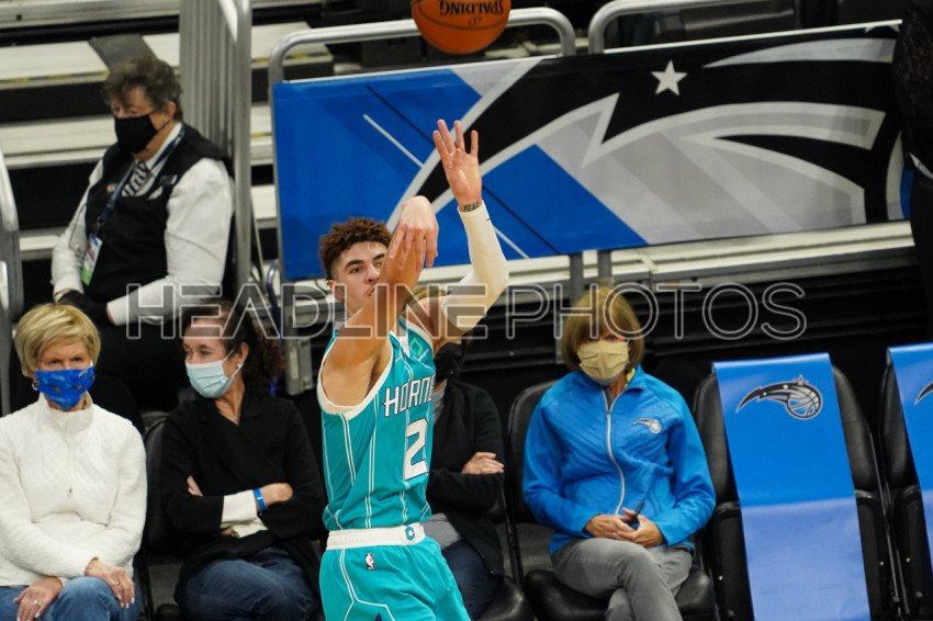 Orlando, Florida, USA, January 25, 2021, Charlotte Hornets player LaMelo Ball #2 takes a 3 point shot during the game at the Amway Center (Photo Credit: Marty Jean-Louis)