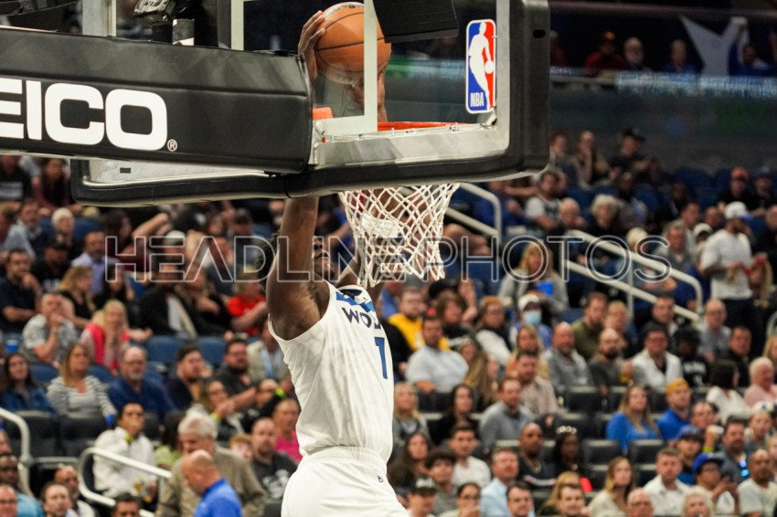 Orlando, Florida, USA, November 16, 2022, Minnesota Timberwolves Guard Anthony Edwards #1 makes a dunk in the first half at the Amway Center. (Photo Credit: Marty Jean-Louis)