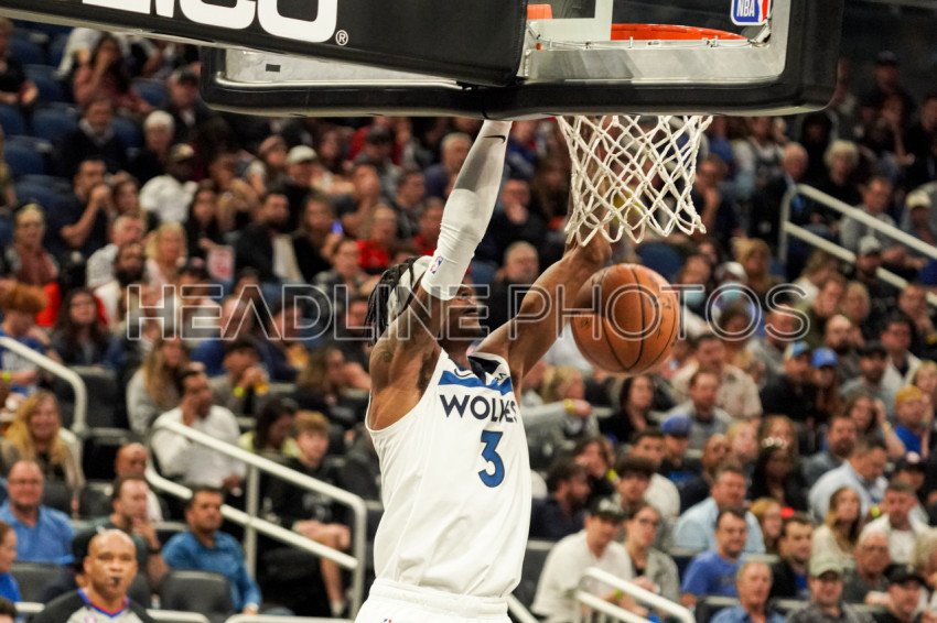 Orlando, Florida, USA, November 16, 2022, Minnesota Timberwolves forward Jaden McDaniels #3 makes a dunk in the first half at the Amway Center. (Photo Credit: Marty Jean-Louis)