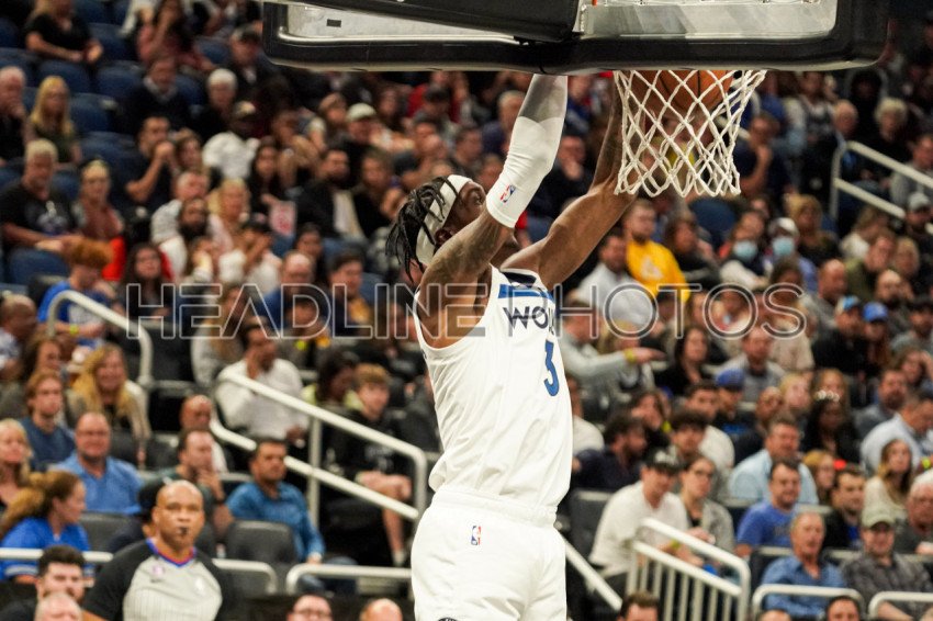 Orlando, Florida, USA, November 16, 2022, Minnesota Timberwolves forward Jaden McDaniels #3 makes a dunk in the first half at the Amway Center. (Photo Credit: Marty Jean-Louis)