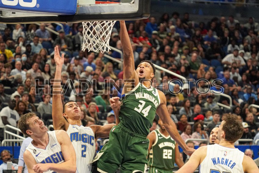 Orlando, Florida, USA, December 5, 2022, Milwaukee Bucks forward Giannis Antetokounmpo #34 makes a layup during the second half at the Amway Center. (Photo Credit: Marty Jean-Louis)