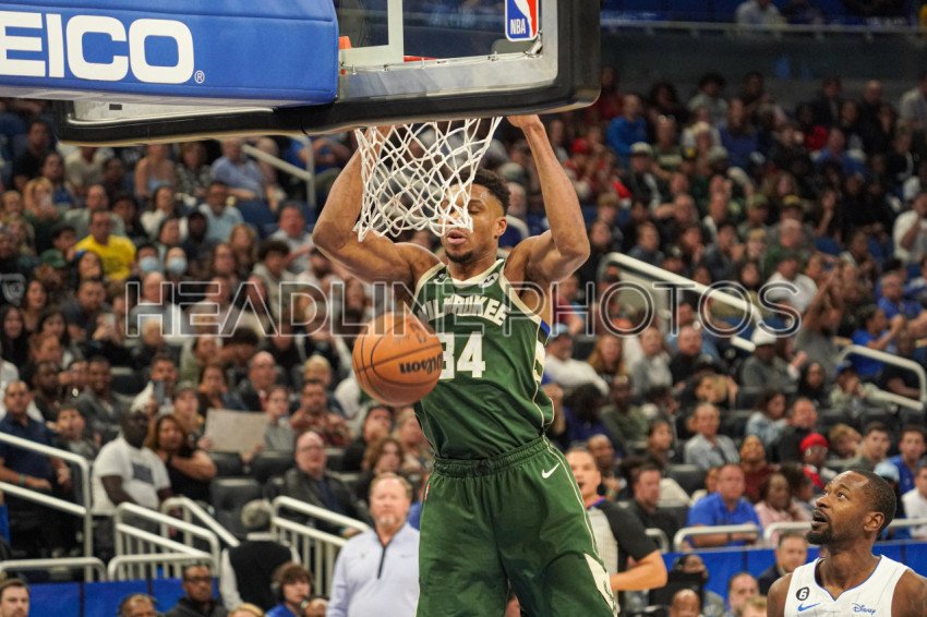 Orlando, Florida, USA, December 5, 2022, Milwaukee Bucks forward Giannis Antetokounmpo #34 makes a dunk during the second half at the Amway Center. (Photo Credit: Marty Jean-Louis)