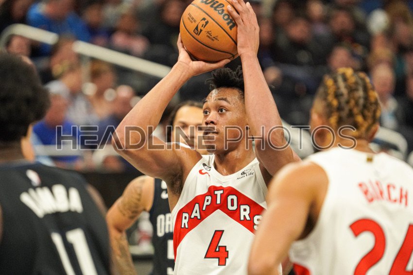 Orlando, Florida, USA, December 11, 2022, Toronto Raptors forward Scottie Barnes #4 shoots a free throw in the first half at the Amway Center. (Photo Credit: Marty Jean-Louis)