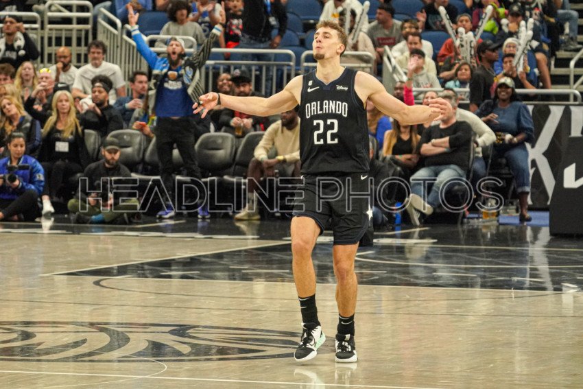 Orlando, Florida, USA, December 11, 2022, Orlando Magic forward Franz Wagner #22 celebrate after making a three in the second half at the Amway Center. (Photo Credit: Marty Jean-Louis)