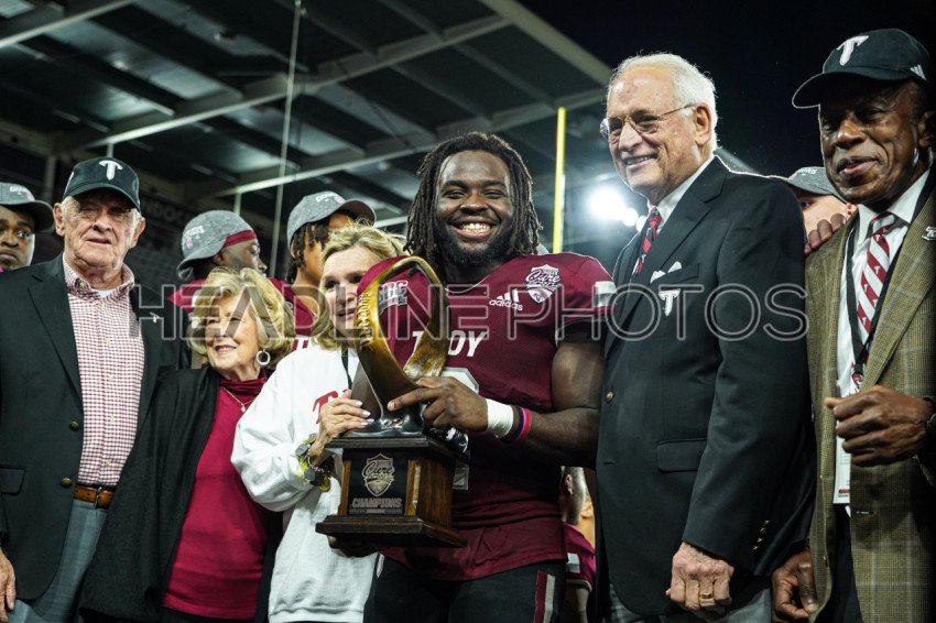 Orlando, Florida, USA, December 16, 2022, Troy Trojans players, Coach and University Staff celebrate after winning the Duluth Cure Bowl at Exploria Stadium. (Photo Credit: Marty Jean-Louis)