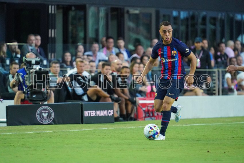 Fort Lauderdale, Florida, USA, July 19, 2022, FC Barcelona defender Sergino Dest #2 runs up field after receiving a pass in the first half at DRV PNK Stadium in a Friendly Match. (Photo Credit: Marty Jean-Louis)