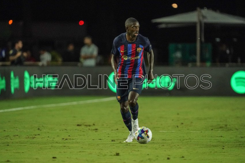 Fort Lauderdale, Florida, USA, July 19, 2022, FC Barcelona forward Ousmane Dembele #7 looks to make a pass at DRV PNK Stadium in a Friendly Match. (Photo Credit: Marty Jean-Louis)