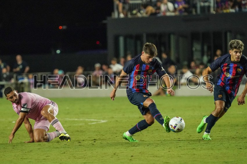 Fort Lauderdale, Florida, USA, July 19, 2022, FC Barcelona player Pablo Torre #26 attempt to score during the second half at DRV PNK Stadium in a Friendly Match. (Photo Credit: Marty Jean-Louis)